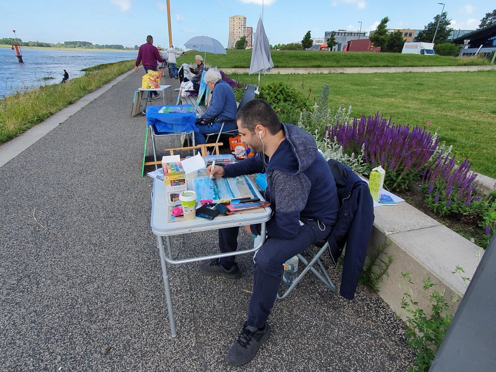 Iedereen die het leuk vindt komt schilderen, tekenen, fotograferen of andere kunstdiscipline beoefenen langs het Scheur in Maassluis. De Koning Willem Alexander Boulevard wordt bezet door kunstenaars, fotografen, fietsers en wandelaars die nieuwsgierig een kijkje komen nemen.