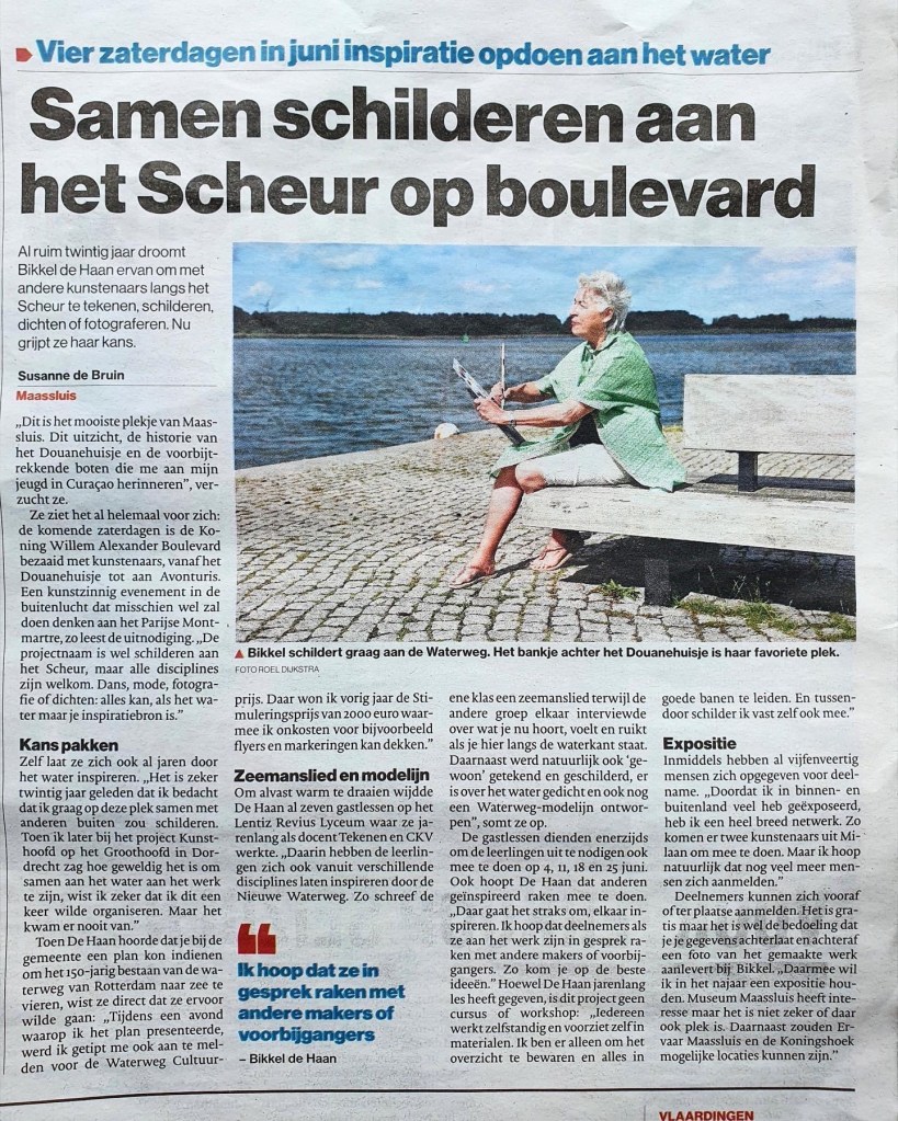 Bikkel de Haan, één van de winnaars van de vijf stimuleringsprijzen van de Waterweg Cultuurprijs 2021, organiseert in juni maar liefst 4 activiteiten rondom haar programma ‘Schilderen aan het Scheur’ in het kader van ‘Pas Halverwege: 150 jaar Waterweg’.