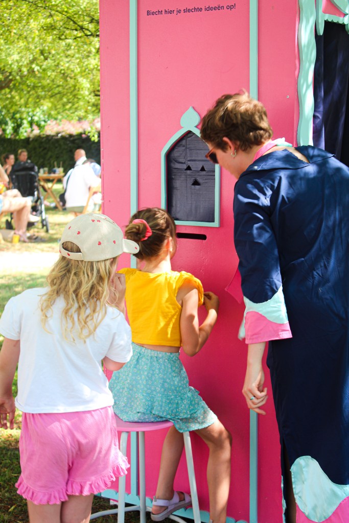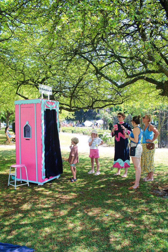 Zondag was een bruisende dag vol spannende en gedurfde ideeën tijdens Proef! de Plantage in Schiedam. Het was een bloedhete dag, maar ons geloof in de kunst en cultuur gaat door weer en wind en dus werd de Kunstbiecht desondanks prachtig opgesteld tussen de bomen van het park. Het biechthokje was daar een kleine oase van creatieve contemplatie en artistieke berusting. Kunstenaarspriester Pauline Wiersema stond klaar om te luisteren naar alles wat bezoekers op te biechten hadden aan waanzinnig slechte én goede ideeën. Magnetroncentra, larpen in de Sodafabriek, een open Pop Podium, taart gooien naar alle moeders en een regenboog als schoolplein, waren slechts enkele van de interessante biechten die Pauline te horen kreeg.
