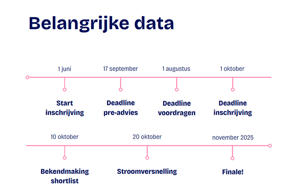 Via het inschrijfformulier dien je een projectvoorstel in. Dat is helemaal niet ingewikkeld, je hoeft slechts een paar vragen te beantwoorden om jouw idee te verduidelijken. Dat is dan meteen je voorstel! Het belangrijkste is dat de jury een goed beeld kan vormen van je idee en inzicht krijgt in je motivatie. Je kunt je inschrijven tot uiterlijk 1 oktober 2025.